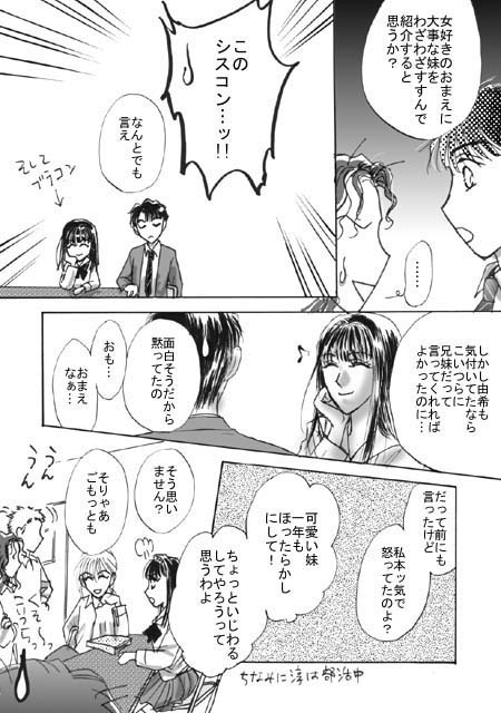 …というわけでACT.7、最終話でございます いやぁ…苦労しました(苦笑) あとがきはえとせとらページをご覧くださいね さて、トビラ絵は学生組創立祭バージョン♪ 描いてて楽しかったのはもちろんコスプレ(違う^^;)の二人 塗りが手抜きなのはご愛嬌〜 この人数ですからね!さすがにヘバりました(^^;) 今回は当社比1.5倍くらいのモブの分量…(笑) 制作中2度もペン先変えたの初めてです (私あんまり替えないんですよね、ペン先) …それにしても ここまで徹底的に手抜きして モブ描く人も珍しかろう… 我ながらなんと申しましょうか…(^^;;;) それでは、またしてもお待たせしまくった最終話、 どうぞお楽しみくださいませ |